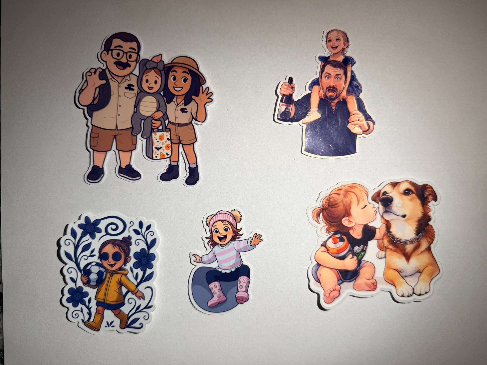 Our stickers are crafted to reflect your unique story. Whether it's a beloved pet or a cherished family moment, we bring your ideas to life with vibrant colors and intricate details.